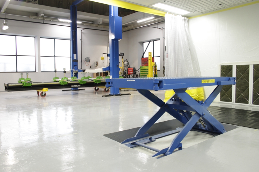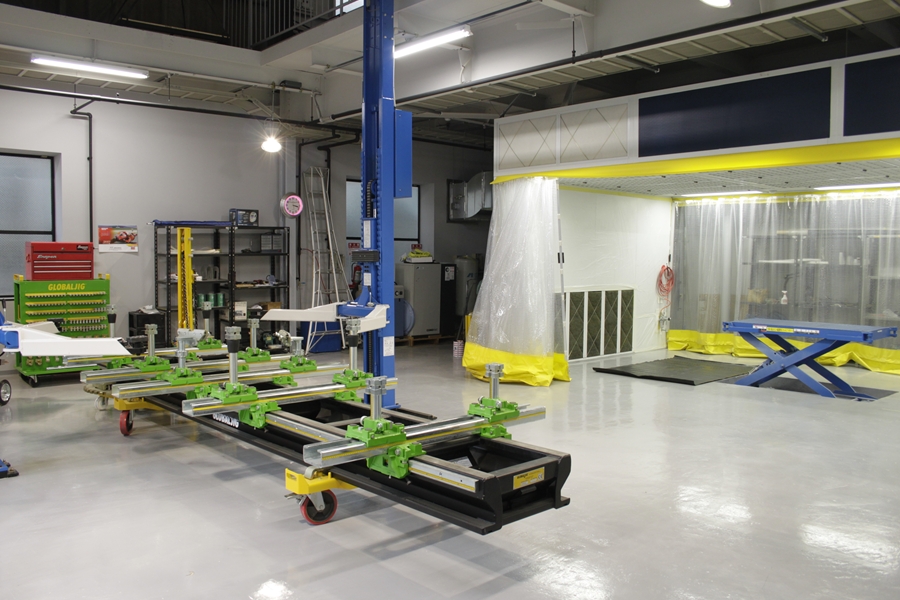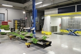 フレーム修正作業は、一見粗っぽい作業に見えるかもしれませんが、最先端の修正設備を有する工場ともなると、自動車メーカーの指定や承認を得た高度なフレーム修正機を用い、3次元でのミリ単位の精密な修復を行うことができます。